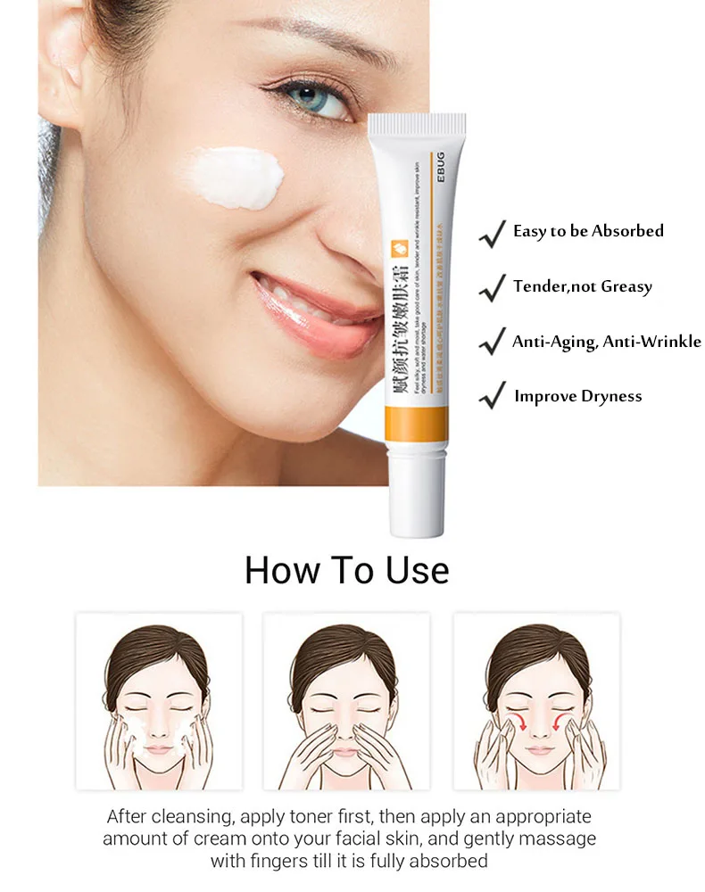 Feature: Watery feeling and silky smooth texture, combined with amino-propanol ascorbate phosphate ester and polypeptide activity extract, Add nutrients to skin layers, Balance skin moisture and oil, With retinol retinyl ester Deeply nourishes and replenishes the skin, Improve the facial fine lines, dullness, dryness and other skin problems, Rejuvenate the skin with youthful firmness and birght and moisturizing look